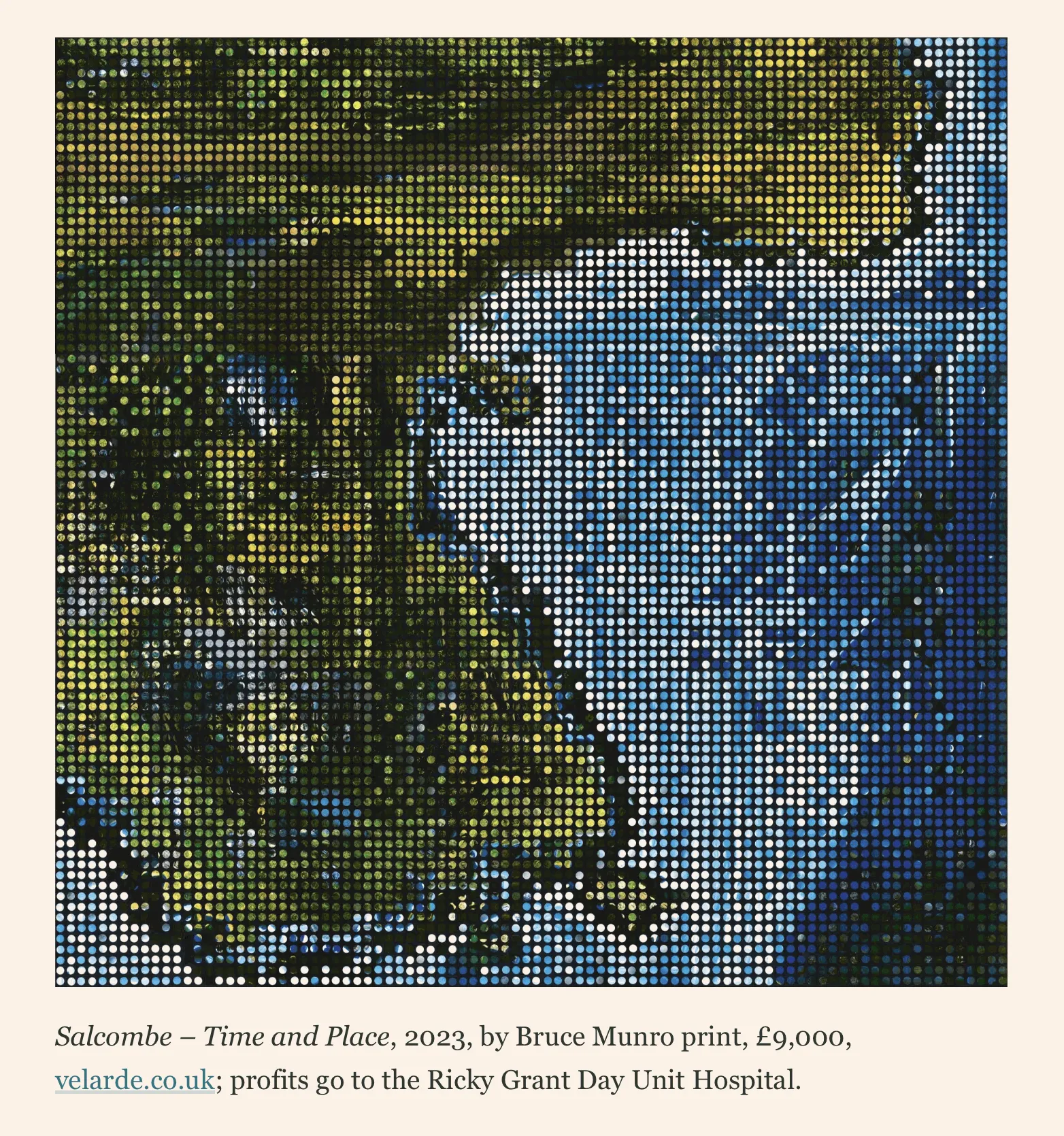 Salcombe - Time and Place, 2023 by Bruce Munro featured in the Financial Times How To Spend It magazine in their article 18 gifts that give back - stylish items that serve charitable causes.